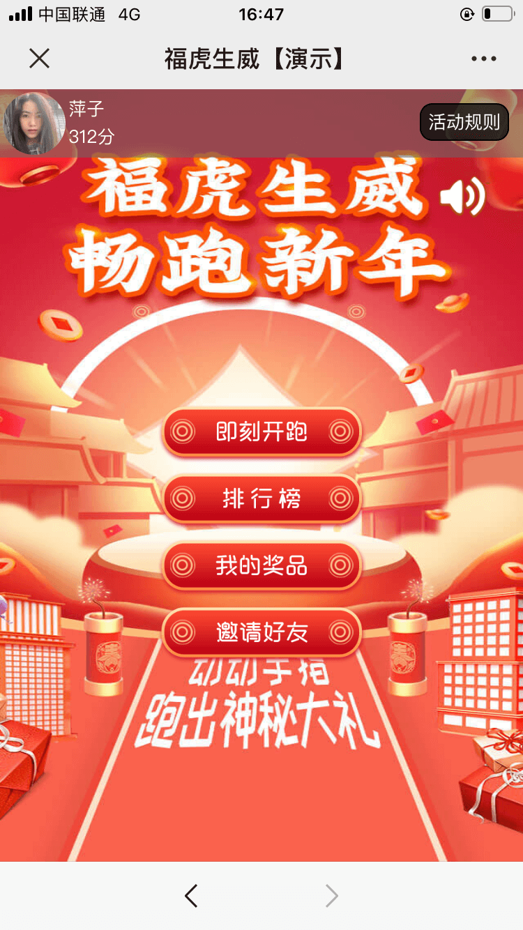 【游戲說明】迎合節日宣傳需求,酷跑達到分數可抽獎實物或者紅包可玩性高