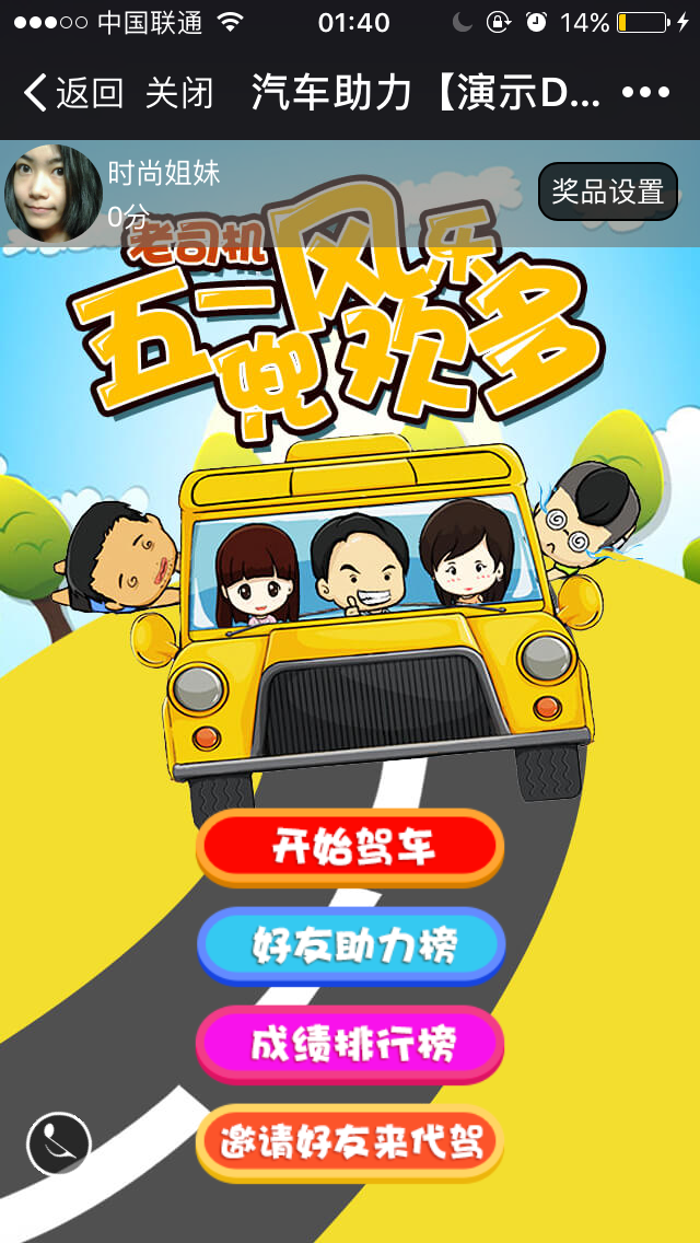 【游戲說明】勞動節是法定節假日,大多數人選擇放假去旅游、開車去兜風,開車的游戲迎合節日主題,邀請好友助力來玩開車游戲,為假期增加樂趣,是一款造勢營銷的微信營銷游戲。活動推出,實現幾千幾萬的增粉效果。