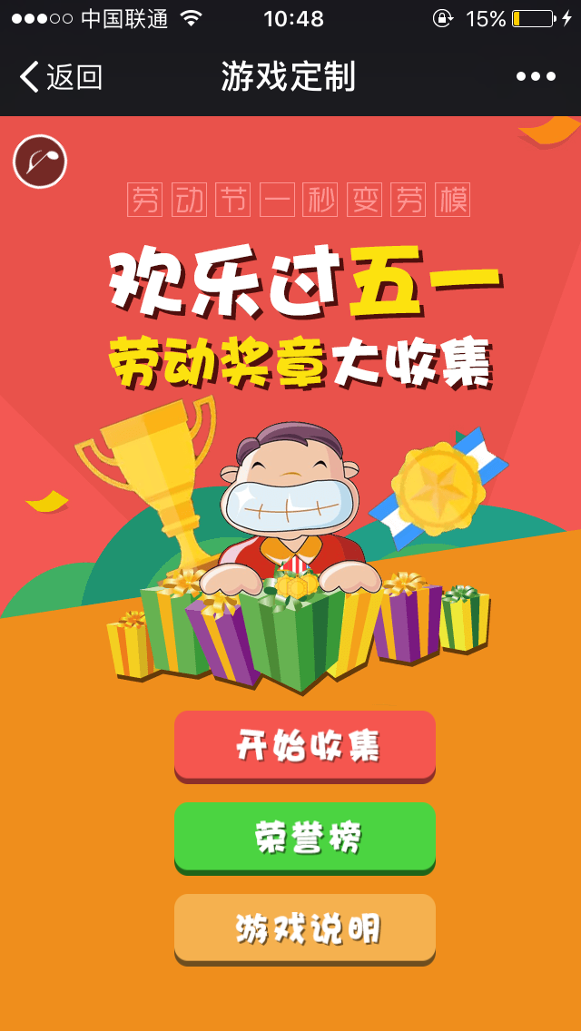 【游戲說明】五一勞動節勞模最光榮,各個行業的勞動楷模都應當受到鼓勵,勞動獎章大收集是一款積極的微信營銷游戲,收集到獎章越多,獎勵越豐厚,活動推出反響很好。