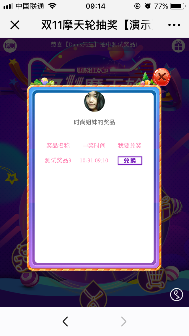 1、活動期間,點擊摩天輪上的禮品圖,抽取獎品;