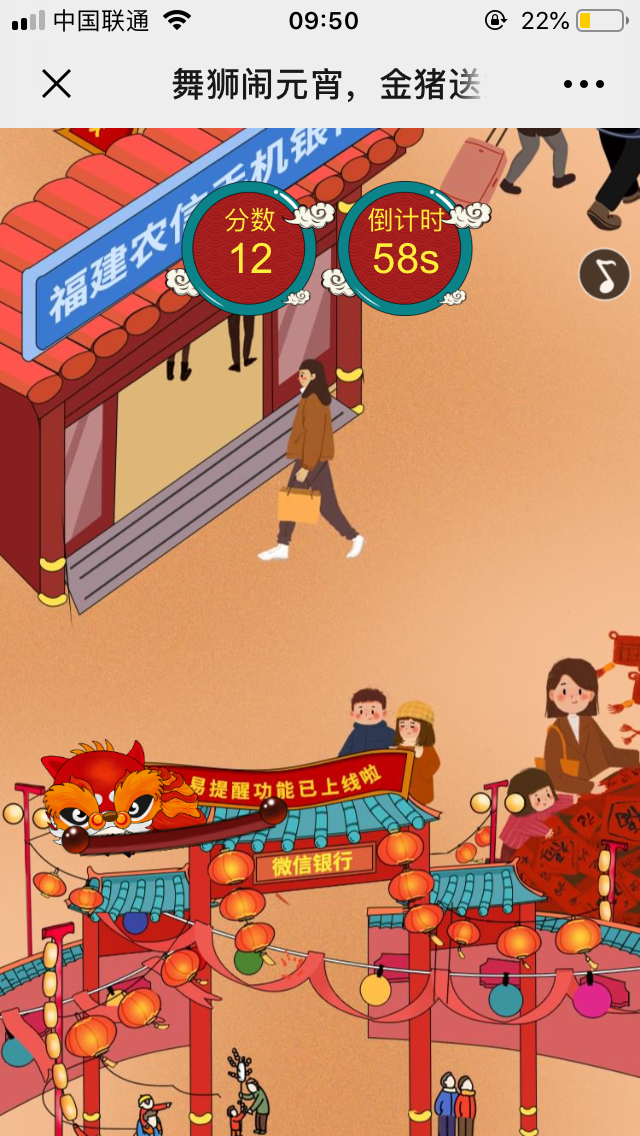2、通過劃線讓舞獅飛躍,飛的越高分數越高,注意躲避空中障礙物