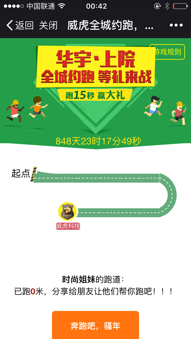 【游戲說明】約跑游戲的推出深受廣大客戶的喜愛,一方面其助力性質帶動更多朋友參與游戲,另一方面將促銷與節日元素結合起來,極大提升品牌形象。活動時間2天,頁面獨立訪問量達到5萬人,獨立訪客數達到5千人。
