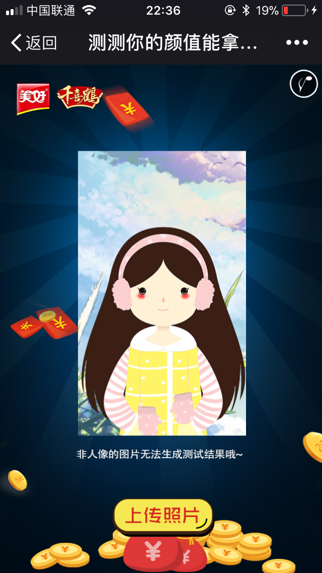 2、上傳(chuan)照片,測(ce)試(shi)顏值(zhi),隨機出現(xian)分數(shu);