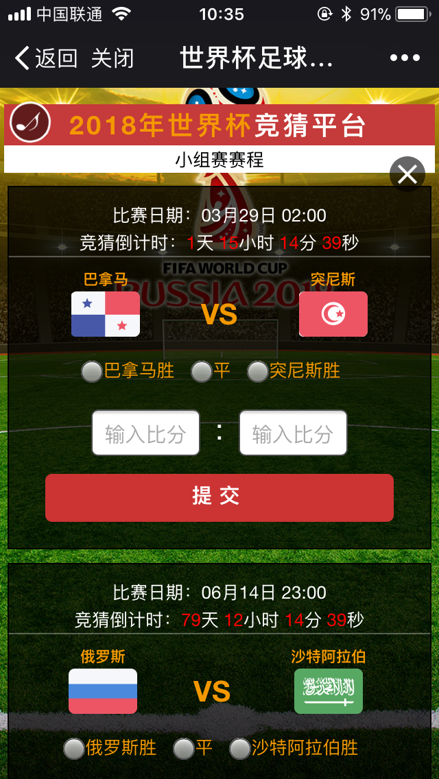 2、按照比賽的場次,選擇競猜的比賽,提交競猜結果,比賽開始前10分鐘停止競猜