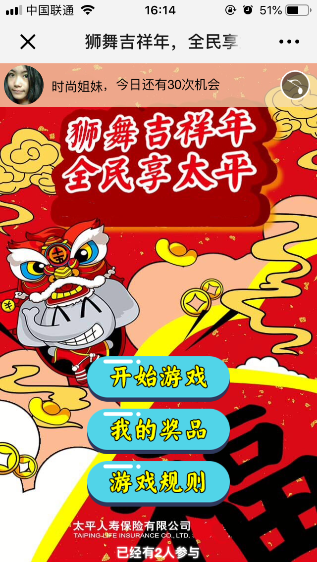 3、15秒游戲(xi)時間,擊鼓達到50下,可獲(huo)得抽(chou)獎機(ji)會,每(mei)天最多x次