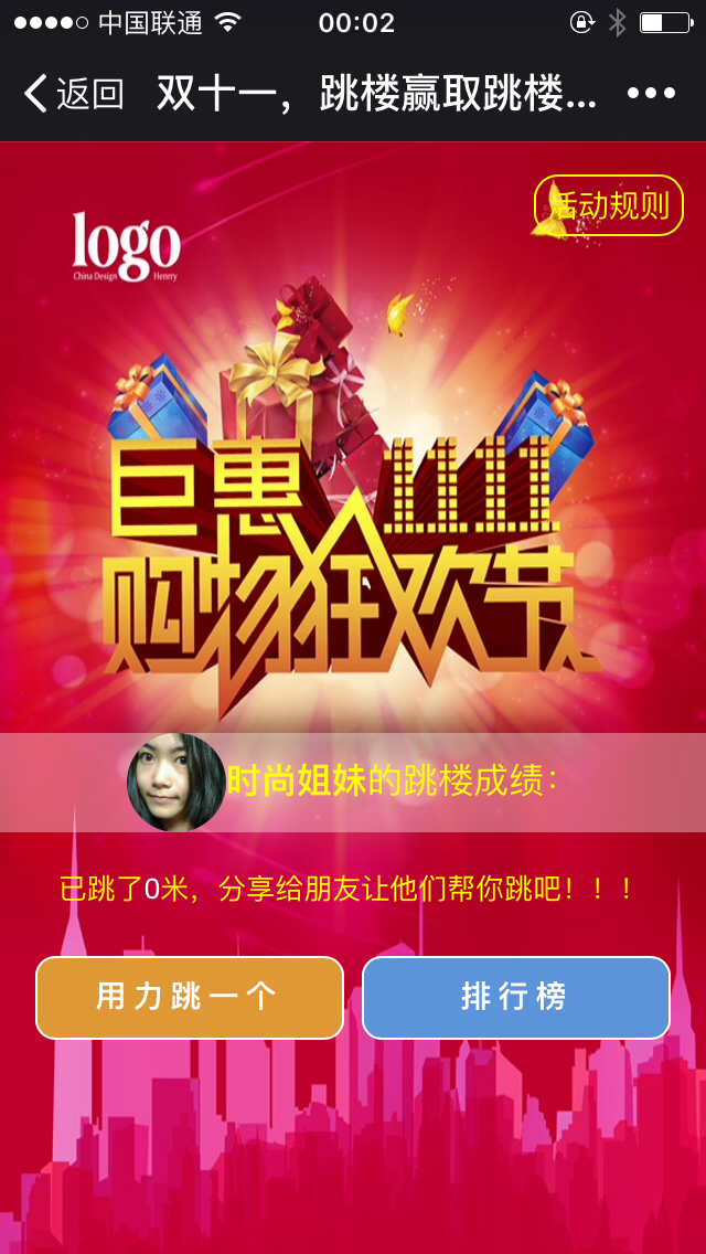 3、每個發起用戶能玩X次,只取最高分數。每人可以被助力無限次數,每位好友僅可幫忙接力跳1次;