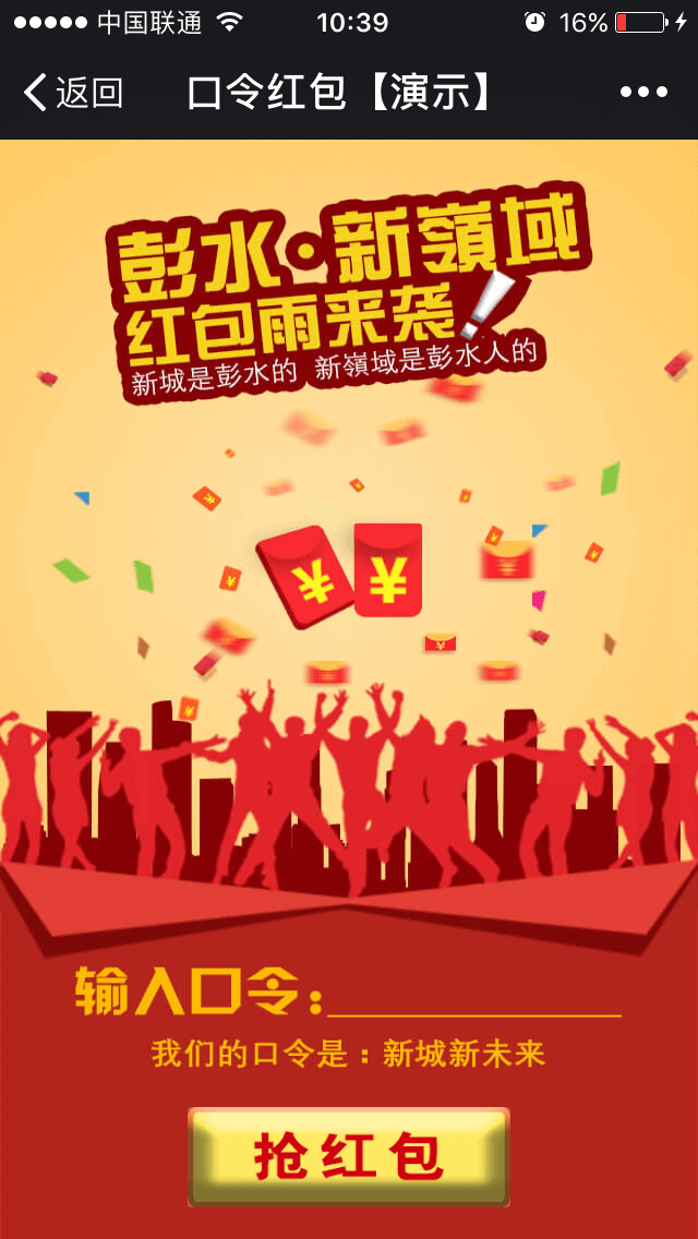 【游戲說明】商家發紅包,從來不手軟。只需要收入口令,就可以隨機領取(qu)紅(hong)包,金額不在乎(hu)大小(xiao),在于體驗游戲的樂趣。而商家適時推廣了品牌,實現了營銷效(xiao)益。活動推出,就好有幾萬人來搶紅(hong)包,活動效(xiao)果大大超過預期。