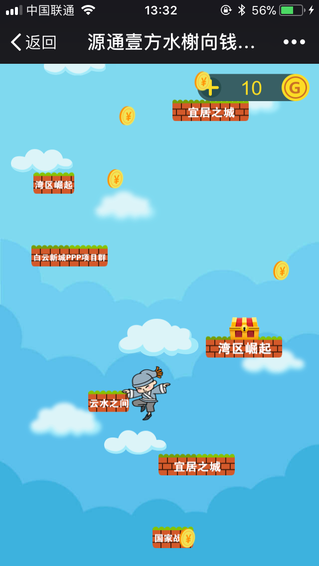 【游戲說明】搖晃手機控制人物的方向,每獲得一枚金幣計10分,碰到地鐵將加速向上。這是一款重力感應的向上跳一跳活動,達到分數可領取紅包。活動推出后,實現幾千幾萬粉絲參與,營銷效果非常顯著。