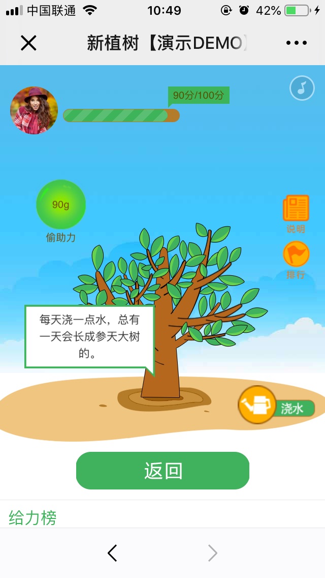【游戲說明】邀請好友助力一起種樹,還可以偷積分,樂趣十足。游戲推廣效果顯著,以小成本,增長了大數量的粉絲。