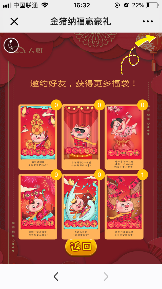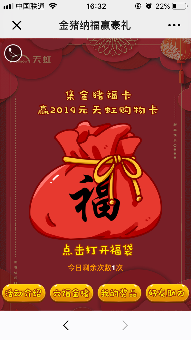1、每天登陸游戲即可獲得1個福袋,分享邀好友助力可獲福袋,每天封頂10次助力機會
