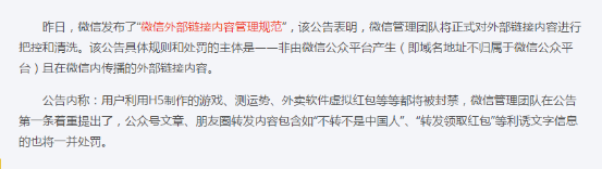 3、此次(ci)規(gui)(gui)范(fan)也(ye)表明了微信(xin)對于違(wei)規(gui)(gui)處理的(de)態度和方法(fa),用戶呼聲(sheng)也(ye)高;