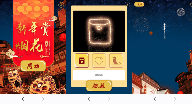 各種圖形煙花,多次燃放,鼓勵分享朋友圈