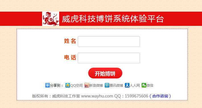 隨著(zhu)互聯網技(ji)術的(de)發展,特別是微(wei)信(xin)的(de)流行,很多人(ren)把目光聚集在如何做好微(wei)信(xin)營(ying)銷上(shang),最近,威虎科技(ji)工作室(shi)小(xiao)王閑來無事,開發出一個網上(shang)博(bo)餅系統(主要基于微(wei)信(xin)),和大家進(jin)行分享(xiang)。
