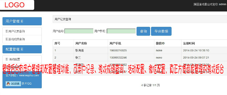 這款游(you)戲的主要功能點有:微信多用戶(hu)參與,拖動圖(tu)片(pian)方(fang)塊移動,可(ke)靈活(huo)設置關卡,后臺可(ke)以靈活(huo)配置游(you)戲規則(ze),導出數(shu)據(ju)等。